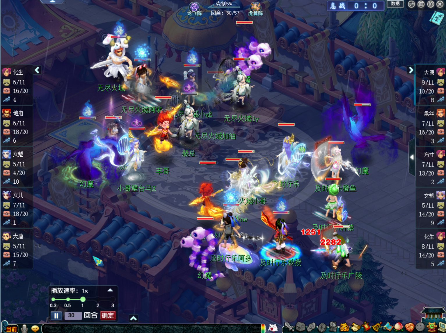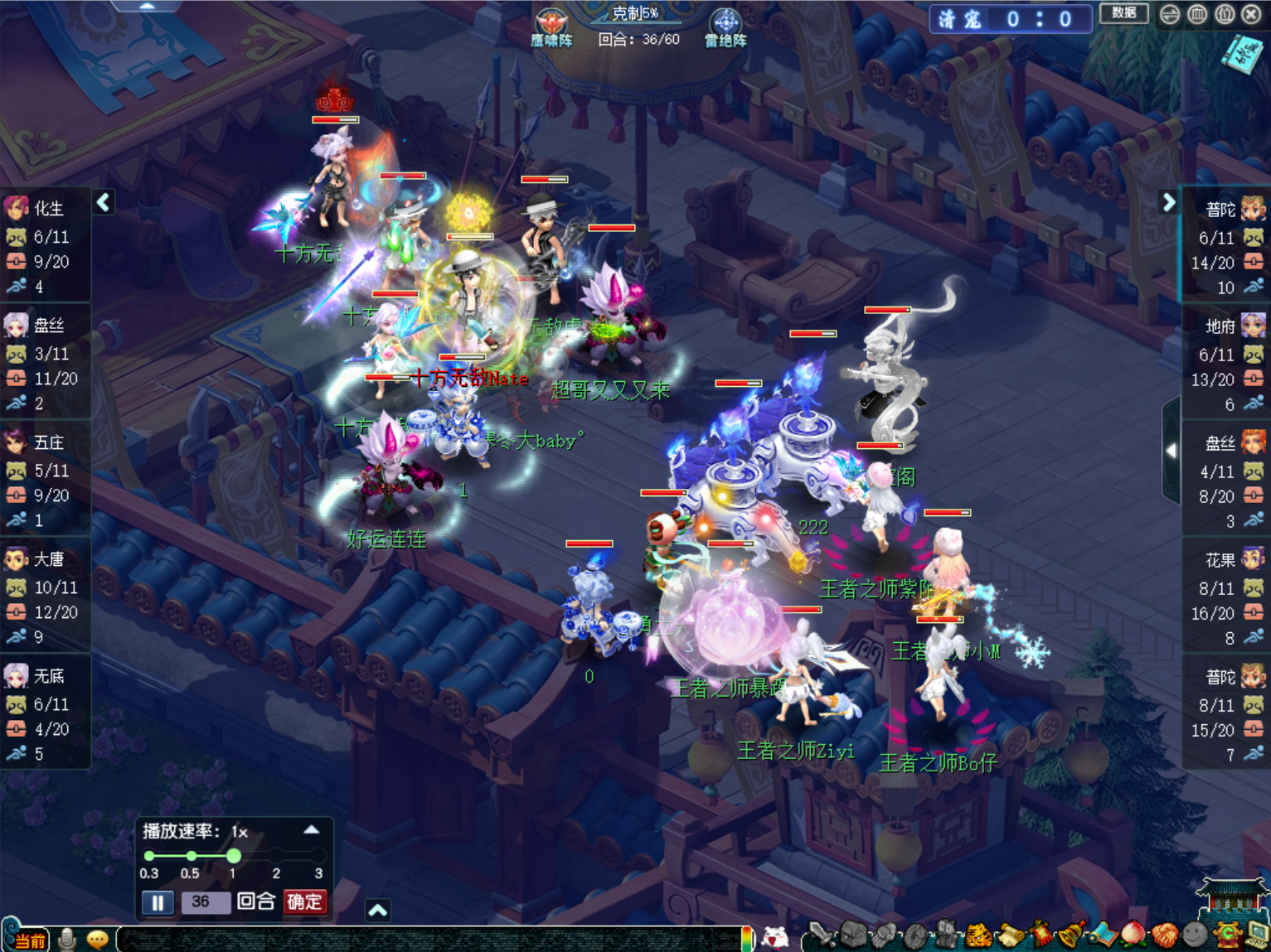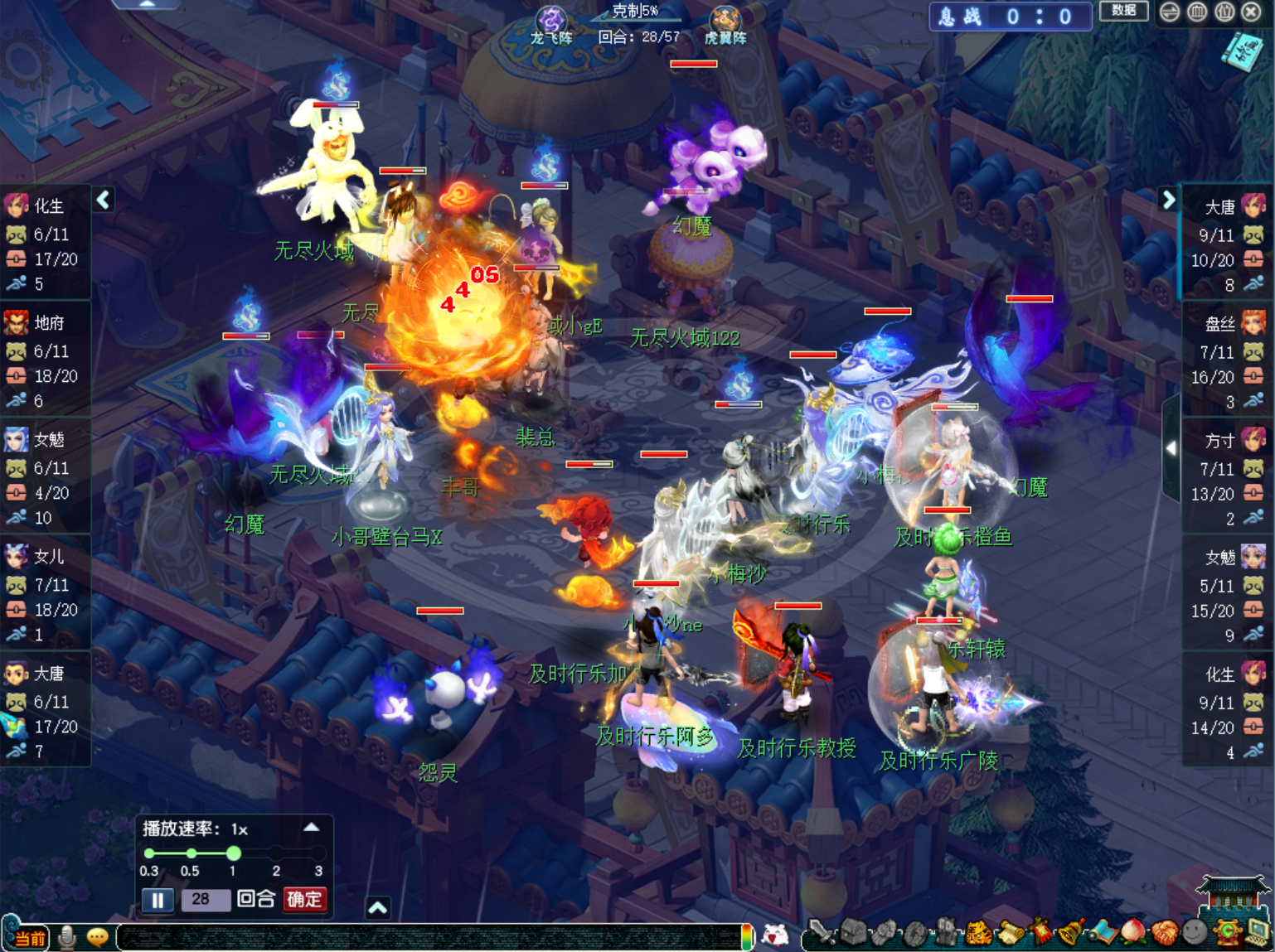 比赛进行至36回合时,【及时行乐】的三刀大唐叠出11层剑意开始转守为攻。由于【及时行乐】前期以清宠和清幻魔为主,这时候,【及时行乐】场上的幻魔和整个队伍的宝宝储备都处于优势。