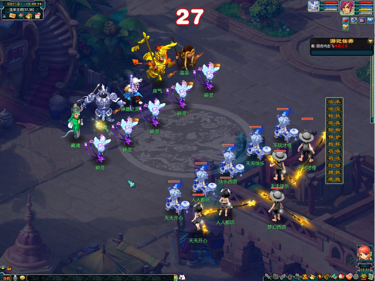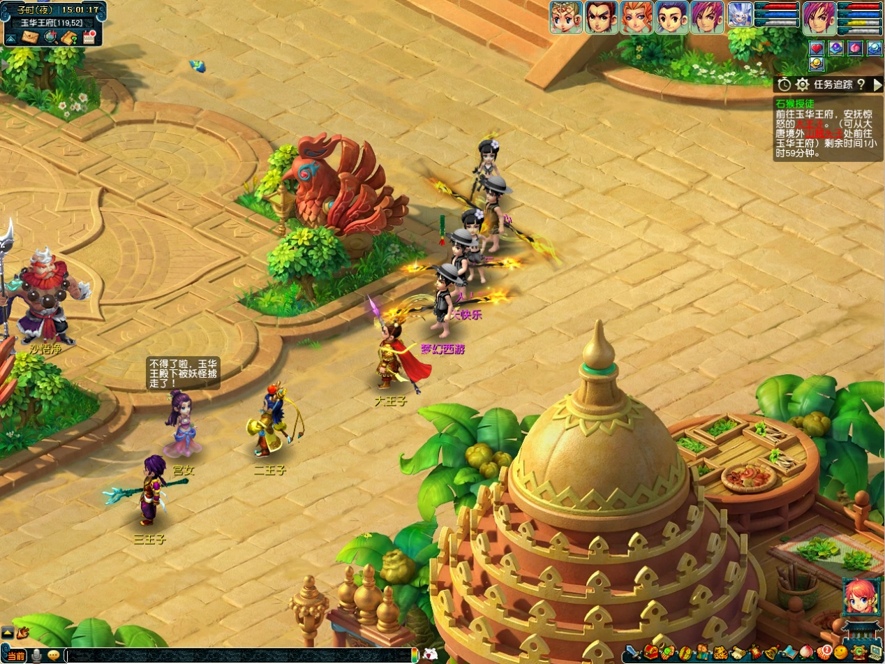 你与同伴闻讯而至,赶至宫中,只见悟空、八戒、沙僧正与妖邪缠斗,却因顾忌伤及无辜百姓,难以全力施为。那三妖修为不浅,布下迷魂大阵,更借宝珠神力,幻化出万千分身,虚虚实实,真假难辨。