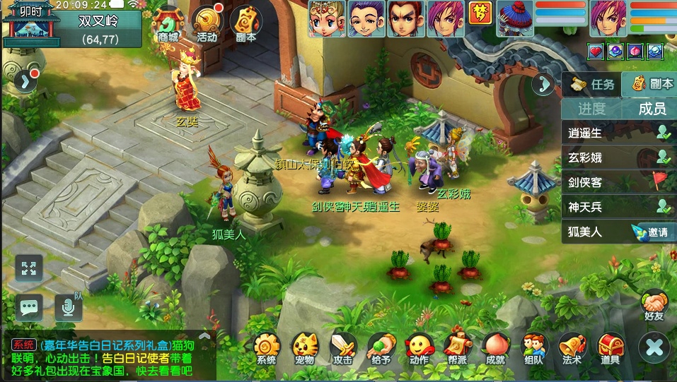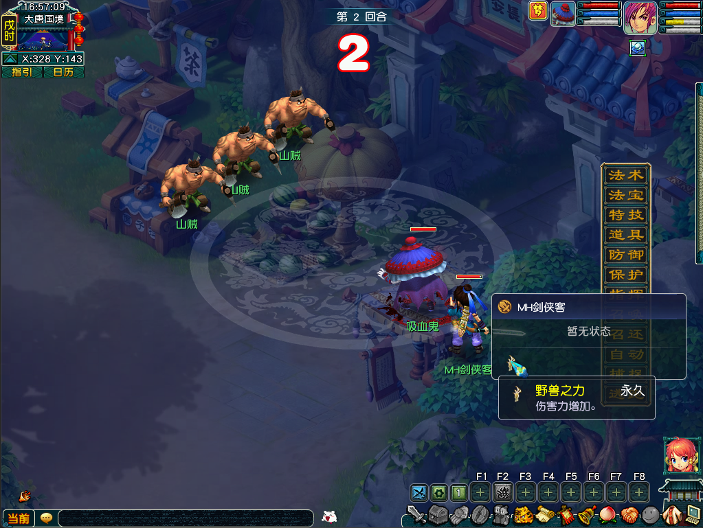 5)“大闹天宫”副本的“运水”、“除草”任务,在到达指定坐标后将在主界面右下角弹出对应道具的快捷使用弹窗;